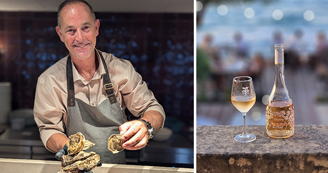 A noi sono piaciuti il Giouvetsi di gamberi, la fricassea di pesce e la seppia in tempura, quest‘ultima servita col suo inchiostro e una particolare marmellata di geranio rosa.